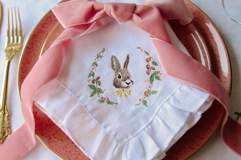 For most of us it will be Easter at home this year, so making your dining experience extra special is sure to put a smile on your face! Our luxury table styling ideas are here to help! The Easter napkins range is even bigger and better this year with more designs and more embroidery options, and we hope you’ll love it as much as we do!