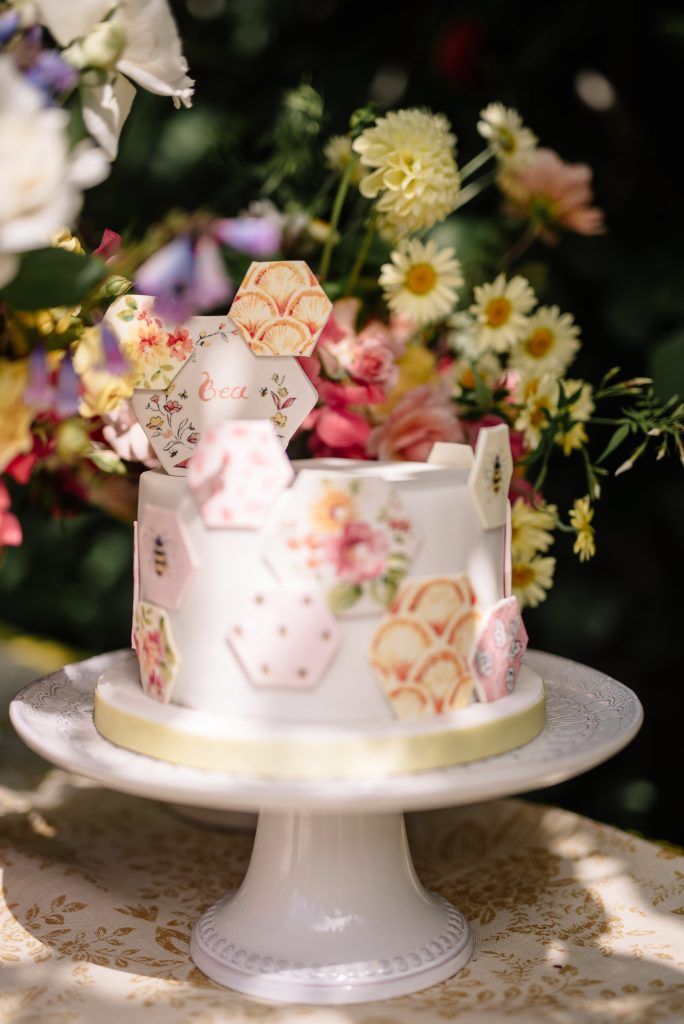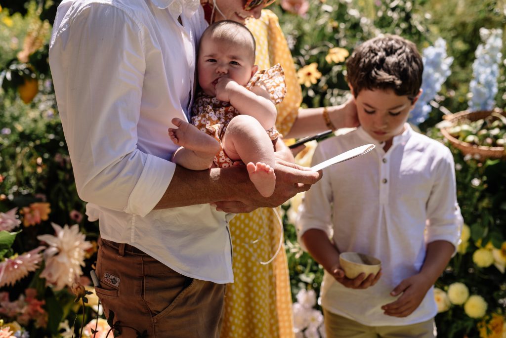 The most beautiful summer garden party vibe was created for the very special Bea, and we felt privileged to be able to make her very own personalised pink napkins complete with the cutest embroidered bee for her naming ceremony meal. It was pretty and whimsical and was styled to perfection!