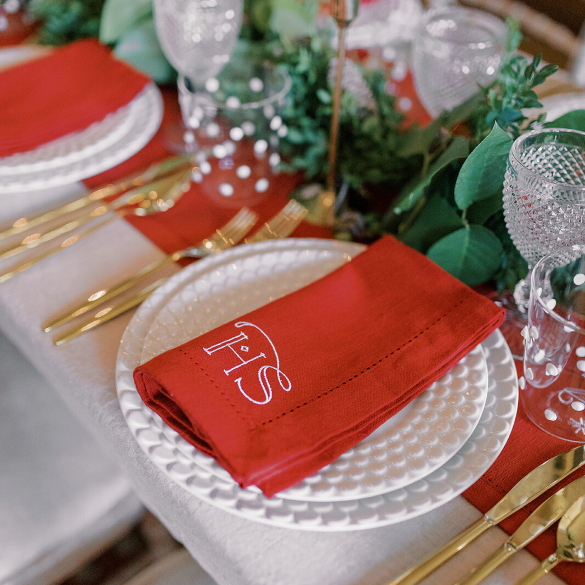 COTTON HEMSTITCH NAPKIN – Red Christmas Napkins Personalised with Festive Monogram