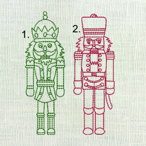 The 100% cotton napkins are approximately 45cm square and are embroidered with a beautiful nutcracker design. We have two styles of Nutcracker designs to choose from, in either red or green, and they can have matching green or red velvet ribbons to finish your eco friendly crackers.