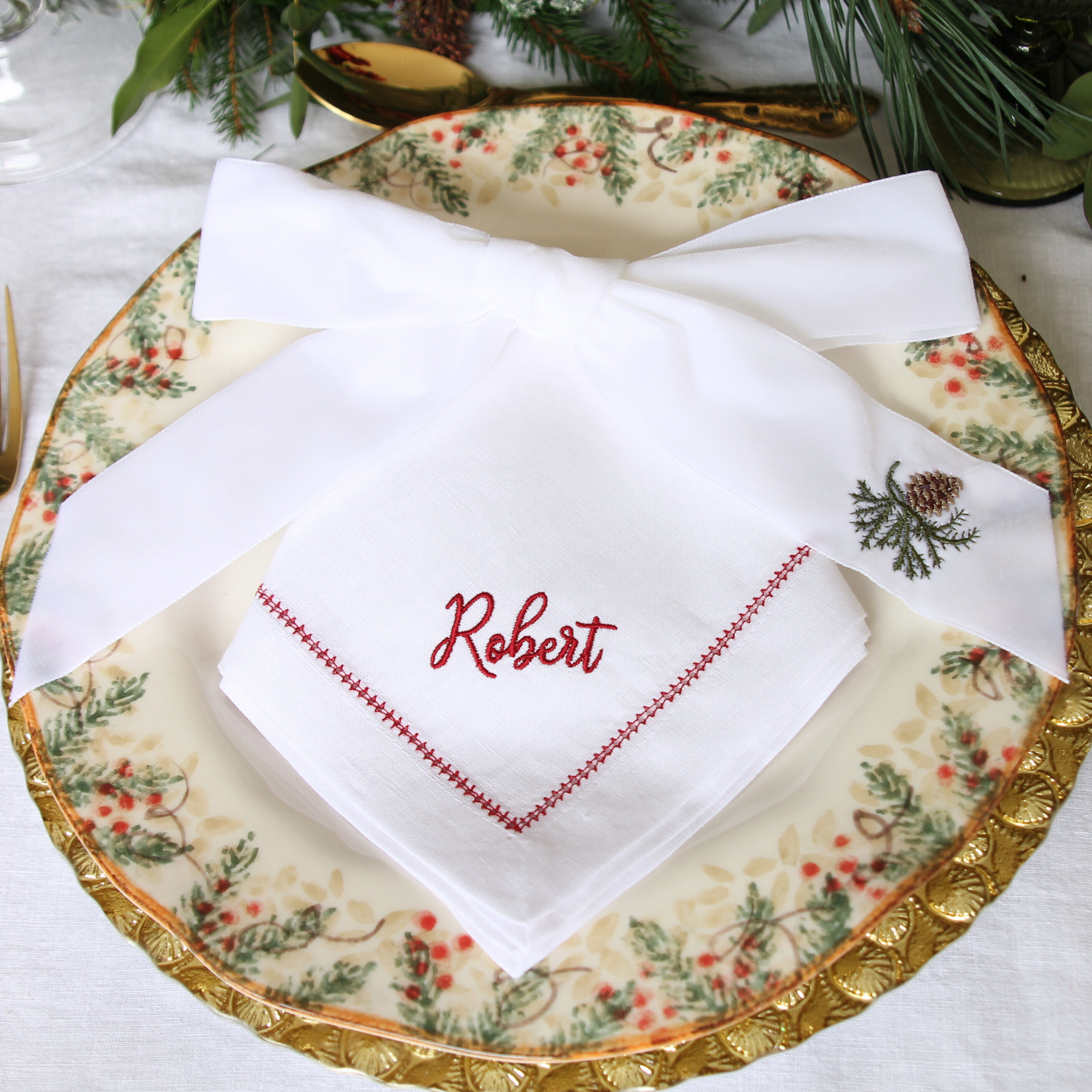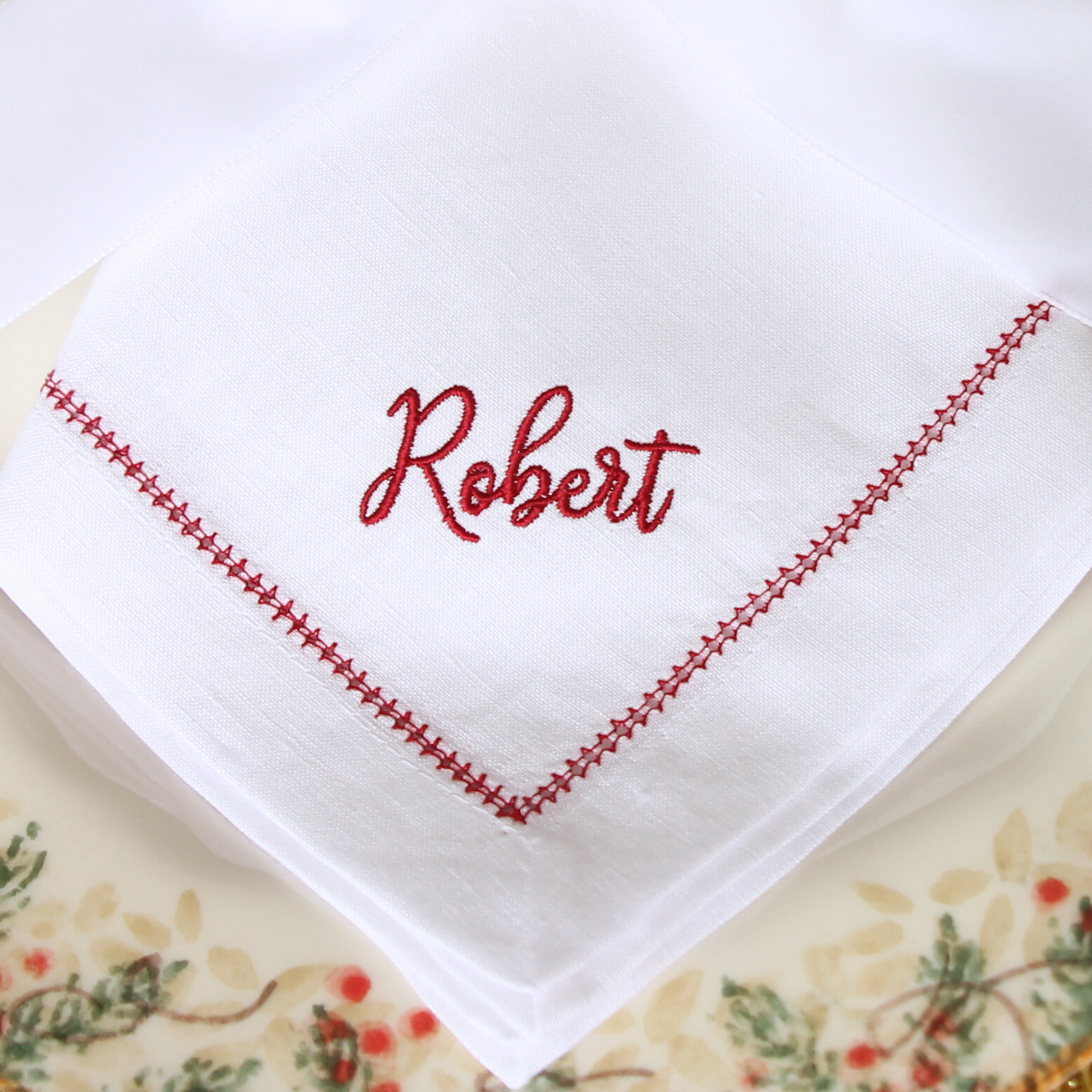 LINEN NAPKIN WITH CONTRAST HEMSTITCH – Napkin Personalised with Name or Initials
