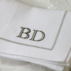 Linen napkins with initials for table setting, is a unique way to have your guest name on your wedding tables or special occasion table. Your embroidery will be positioned on the lower right corner of the napkin, either diagonal or horizontal in the corner. Napkin corners are mitred and each edge has a hemstitch finish.